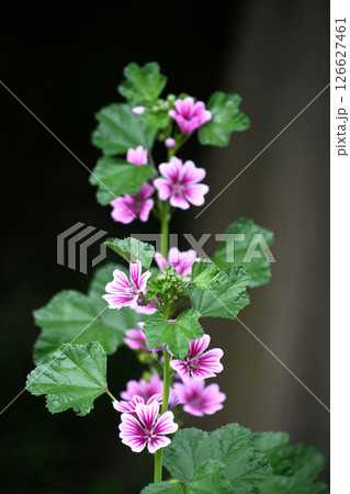 Buds and blooming flowers of Malva Sylvestris.