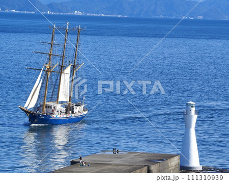 静岡県 白灯台と帆船みらいへ 11月