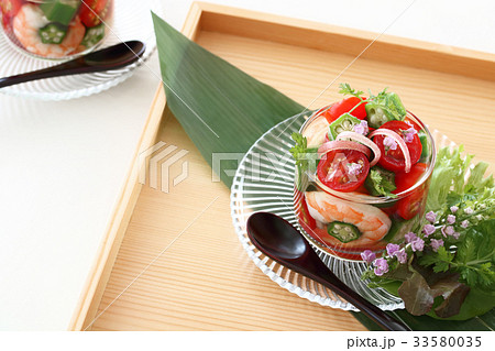 プチトマトとオクラのゼリー寄せ