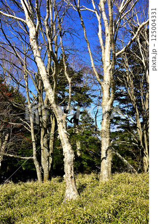天子山地の雨ヶ岳山頂 笹原に生い茂るダケカンバ