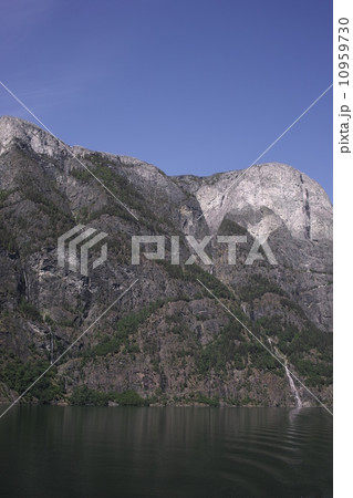 ノルウェー クルーズ観光船から見たソグネ・フィヨルド 夏の青空と白い雲