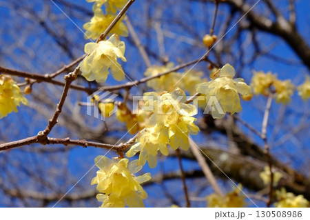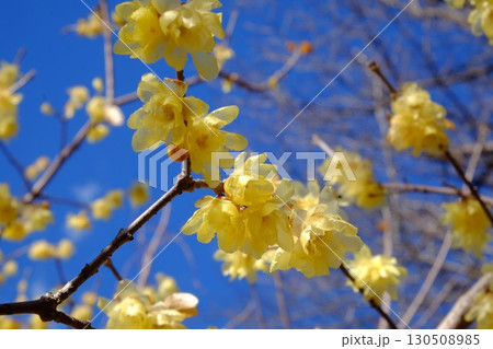 青空に咲く黄色いロウバイ 【相模原市津久井 2月】