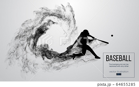 Abstract silhouette of a baseball player batter on white background from particles, dust, smoke. Baseball player batter hits the ball . Background can be changed to any other. Vector illustration