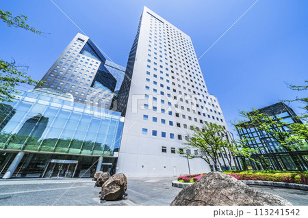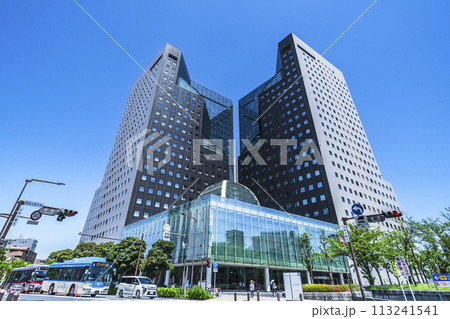 川崎市の都市風景 超高層ビル「ソリッドスクエア」と爽やかな青空【神奈川県】
