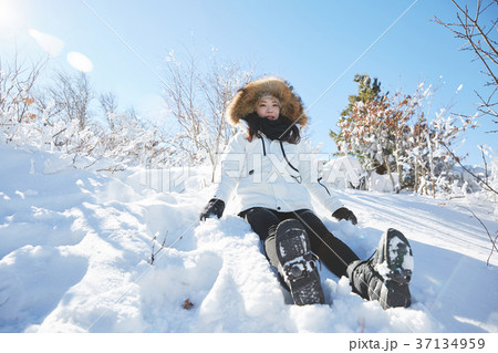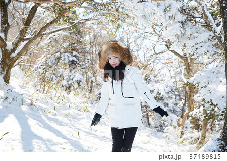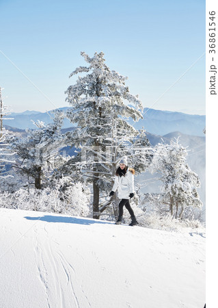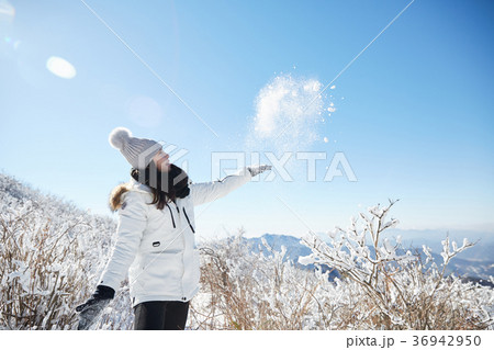 徳裕山 雪景色 若い女性