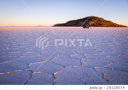 Sunrise with jeep at Salar de Uyuni, Bolivia