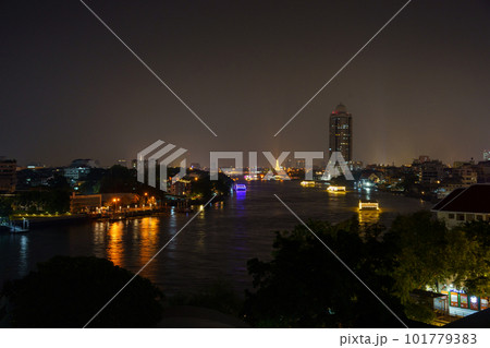 チャオプラヤー川の夜景(メモリアルブリッジとワットアルン)
