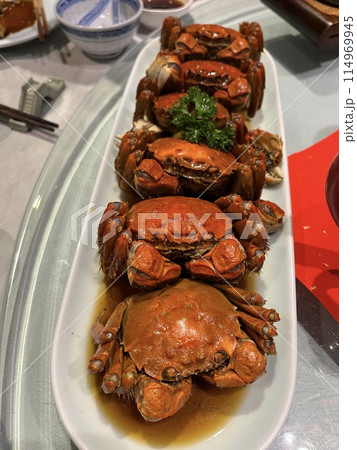 中国上海料理・鲜蟹粉扒脆辽参(黒ナマコのフライ蟹肉ソース)