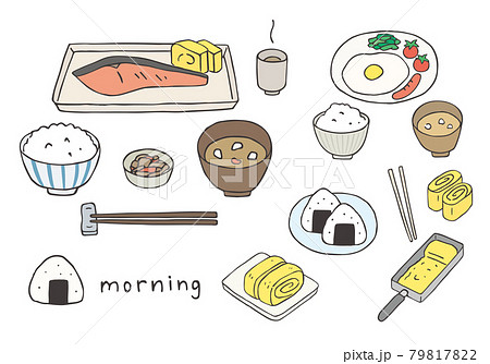 和食朝ごはんの手描きイラストセット(カラー/輪郭線なし)