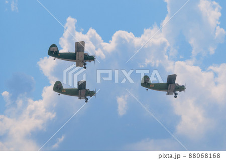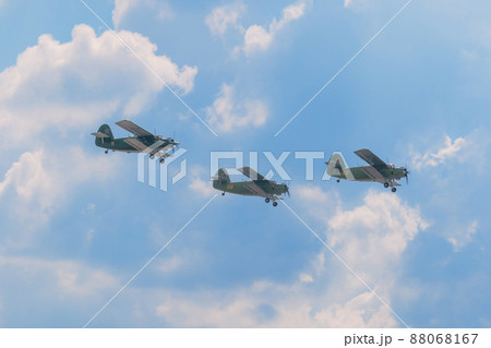 ロシア空軍アントノフAn-2輸送機編隊飛行