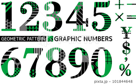 ポップなパターン入り数字_グリーン_明朝体