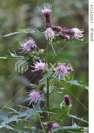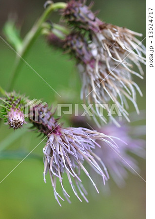 自然 植物 トネアザミ、花。針の様な総苞片が反り返っています。触ると「痛ッ!!」となります