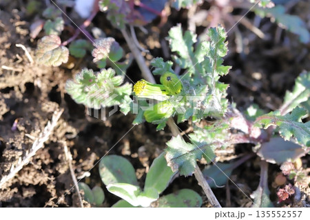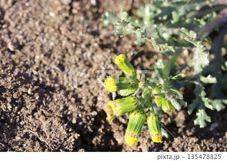 日本の早春の野原に咲くノボロギクの黄色い花