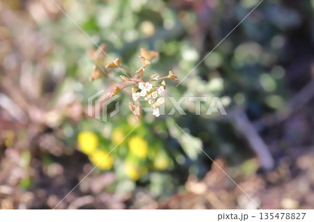 冬の道端に咲くノボロギクの小さな花