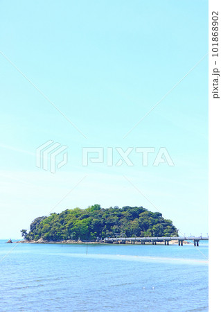 青空と新緑が映える海上の大鳥居(八百富神社/竹島弁天)〈三河湾国定公園/愛知県蒲郡市〉