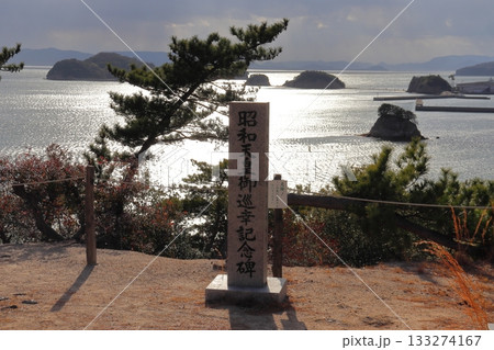 小豆島 富丘八幡神社の昭和天皇御巡幸記念碑とエンジェルロード