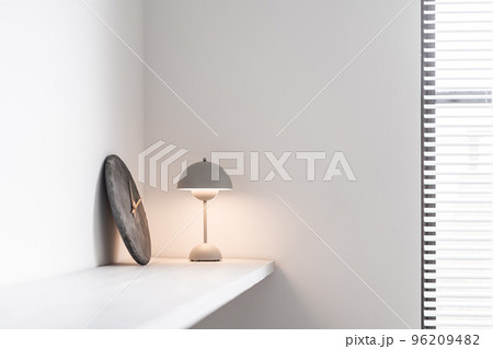 シンプルな白い目覚まし時計と余白 朝のイメージ