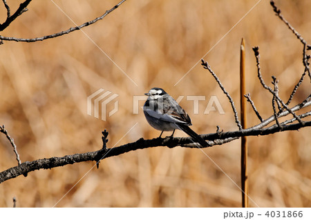 東京都三鷹市の野鳥 仙川河岸枯れ草にとまるハクセキレイ