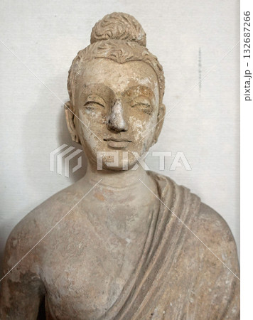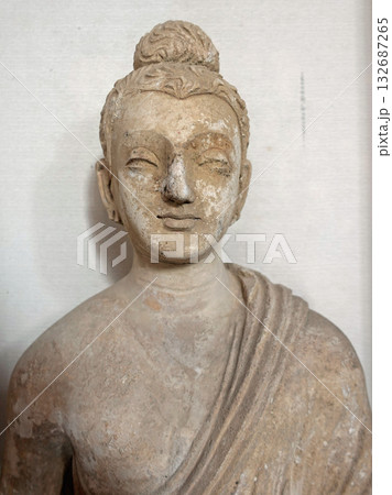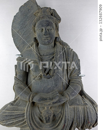 仏教美術史に残るガンダーラ地方の東部パキスタンのタキシラ博物館に展示される仏立像