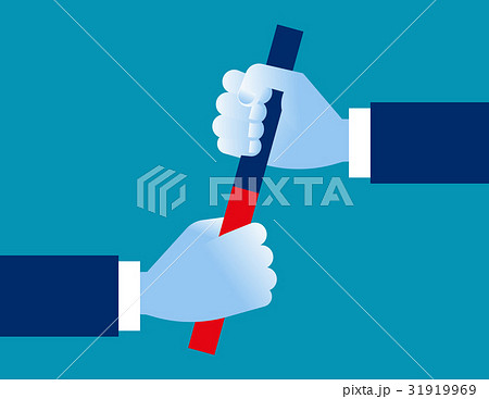 Business man passes baton to colleague, demonstrating good teamwork and complete trust