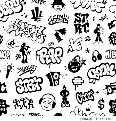 Graffiti Hip Hop Music Style Lettering Characters Sign Symbols Seamless Vector Pattern , Background Design Element