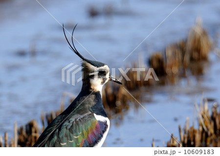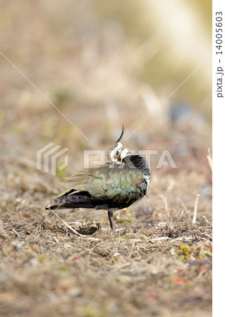 生き物 野鳥 タゲリ、光沢があり緑色や赤銅色、葡萄色に見える背中が美しい