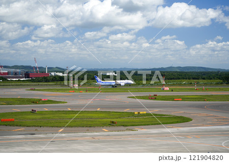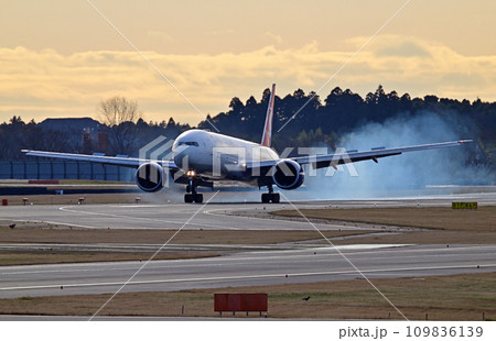 イラスト素材:国内旅行・国内線・短距離路線の旅客機/飛行機、着陸態勢 (自由に色変更OK!