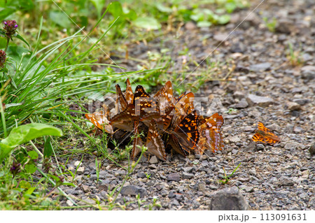 ヒグマの糞に群がるタテハ