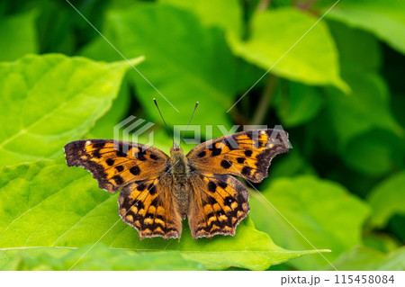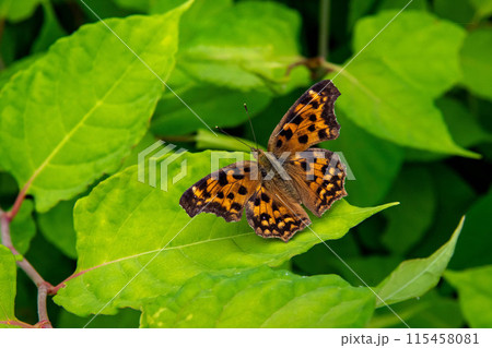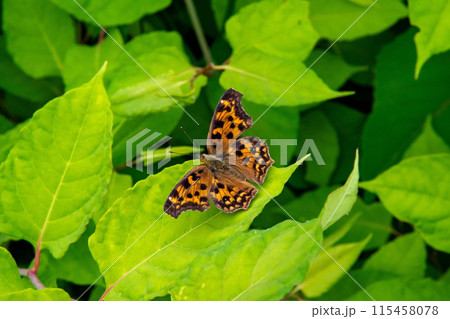 イタドリの葉にいるキタテハ