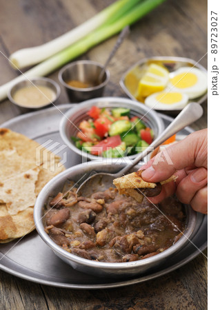 エジプト料理のフムス(ホンモス)タヒーナを使用したパン用ディップソース