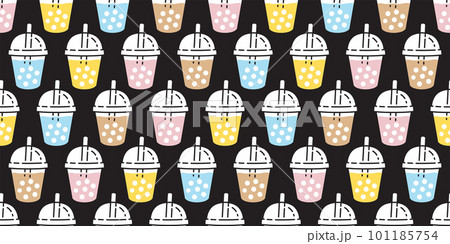 Boba tea seamless pattern vector bubble milk tea gift wrapping paper repeat wallpaper tile background scarf isolated illustration doodle design