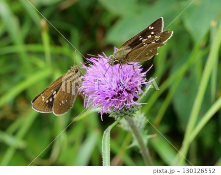 タムラソウにとまるセセリチョウ