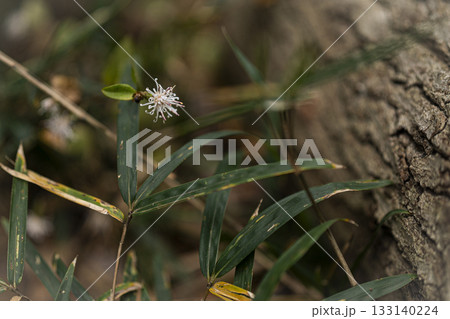林の中で秋に咲く白い花、コウヤボウキ