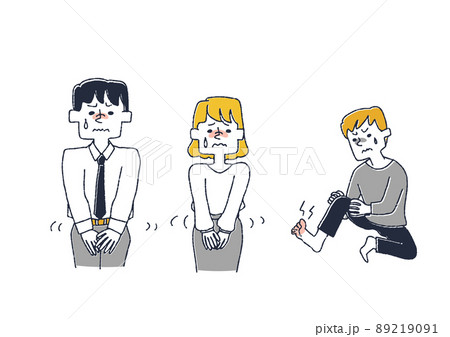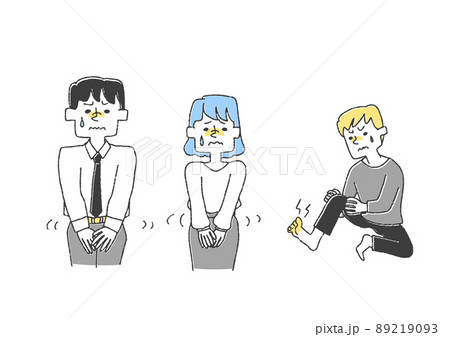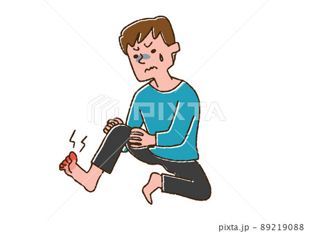水虫で悩んでいる男性 コミカルな手書きの人物 ベクター、温かみのある線画