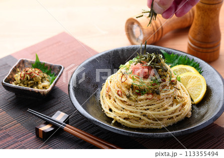 高菜と明太子の和風パスタ