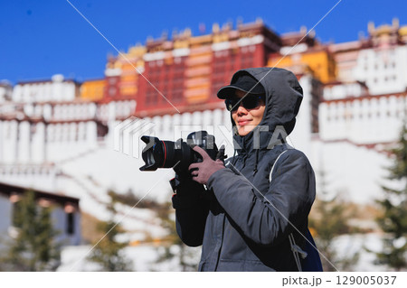 Photographer taking photo of the potala palace in Lhasa city,Tibet,China
