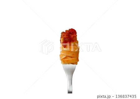 白背景のフォークで巻いたボロネーゼのタリアテッレ