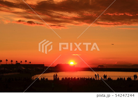 タルイサザンビーチ りんくう南浜海水浴場(大阪府泉南市)に落ちる夕日