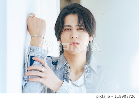 オーバーサイズシャツの男性モデル(目線・目力・視線・クール)