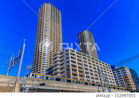 神奈川県 中原区 武蔵小杉のタワーマンションと南武線