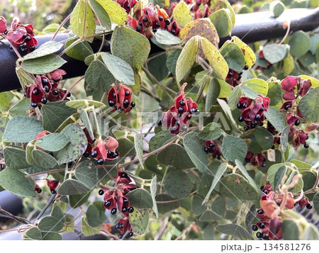 タンキリマメの赤いサヤと黒い実