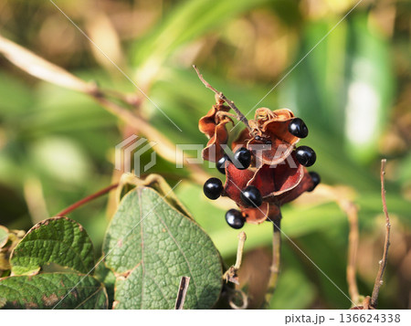 マメ科の蔓性植物タンキリマメの黒い果実