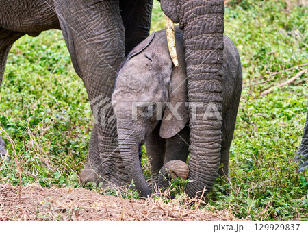 マニャラ湖の子ゾウ(母ゾウに守られる姿)