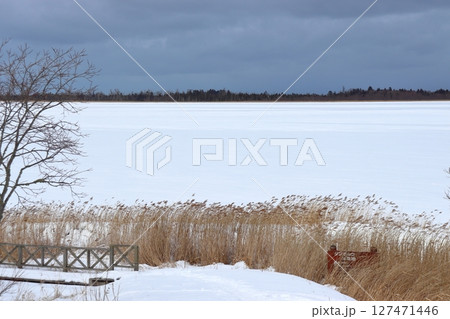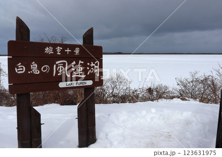 真冬の根室十景 タンチョウ生息地 白い風連湖