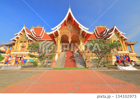 ホー・タンマサパは、プラ・タート・ルアンの庭園に面した印象的なたてもの