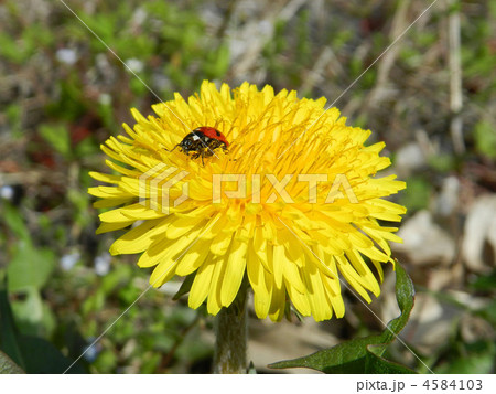 タンポポとテントウムシ