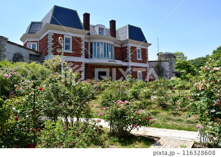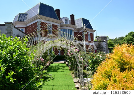 栃木県那須町 那須高原のダイアナガーデンエンジェル美術館と満開のバラ