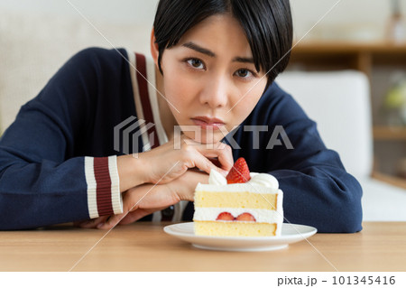 若い女性 ダイエット 我慢 ドーナツ スイーツ