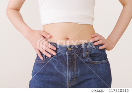 若い女性のウエスト くびれ スリム お腹の脂肪 ダイエット 贅肉 イラスト