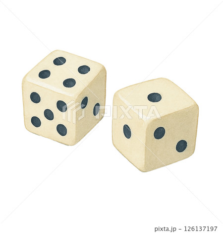 水彩風のサイコロ2個のイラスト(切り抜きPNG素材)